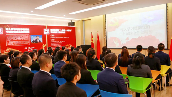 珍宝岛药业坚决拥护并积极响全会精神,于10月24日组织召开专题学习会议,深度解读、精准把握二十届四中全会核心要义。并以此为基点,战略性谋划企业以创新为第一动力的发展新格局。学习会议由党委书记、总裁闫久江主持,企业核心领导班子成员认真聆听记录并组织开展专题讨论会,深度解读、全面落实全会精神。